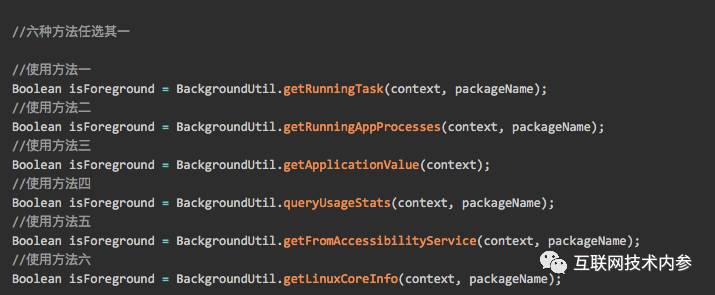 传入Context参数与想要判断是否位于前台的App的包名,会返回ture或者false表示App是否位于前台